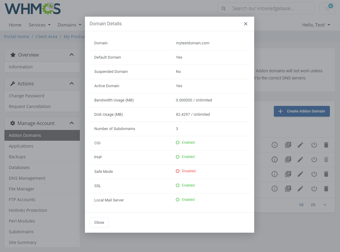 - Supports WHMCS Metric Billing - Integration: Disk Space, Bandwidth, Email Accounts, Addon Domains, Parked Domains, Subdomains, MySQL Databases, MySQL Disk Usage, Sub-Accounts