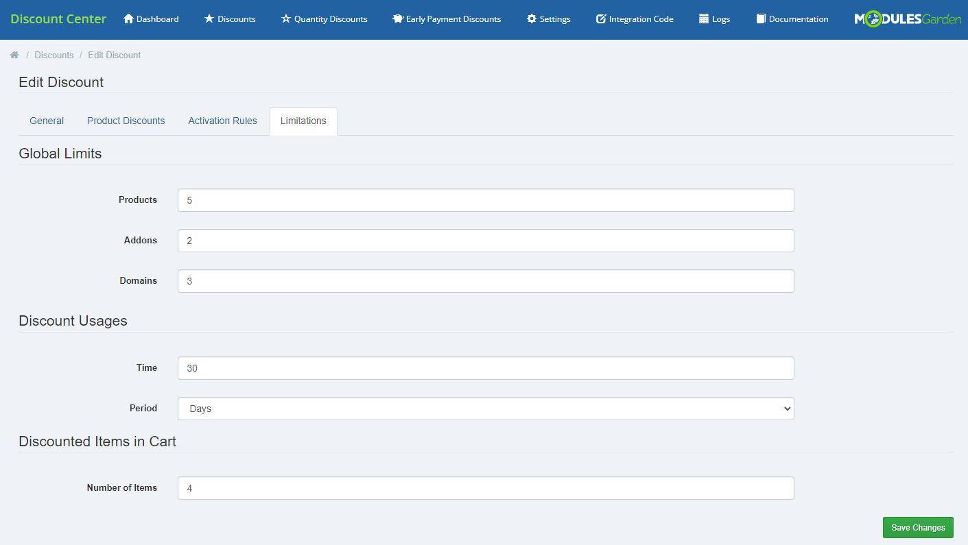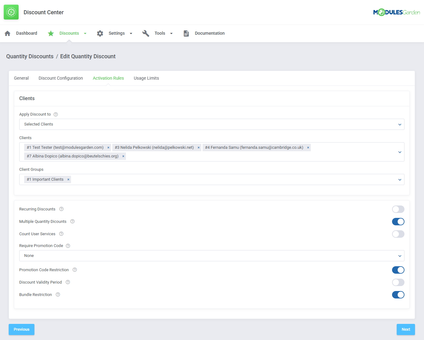Discount Center For WHMCSPaul Reilly (P R Systems IT Solutions Ltd) 4 years agoExcellent add-on to use in instead of the WHMCS discounts and promotions section to allow you provide more complex promotions. ModulesGarden customer services second to none :)