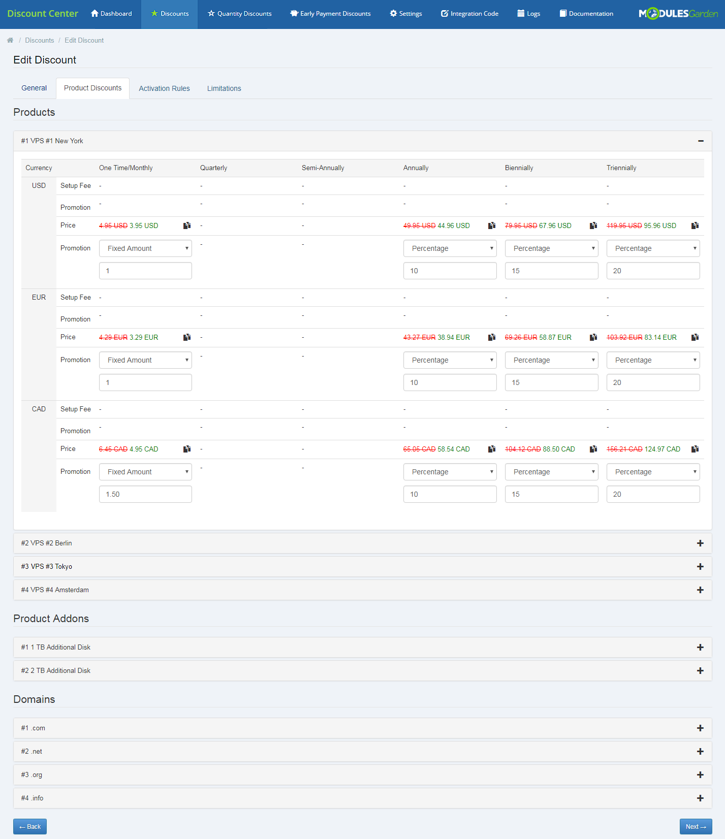 - Create Multiple Discounts For Products, Domains And Product Addons