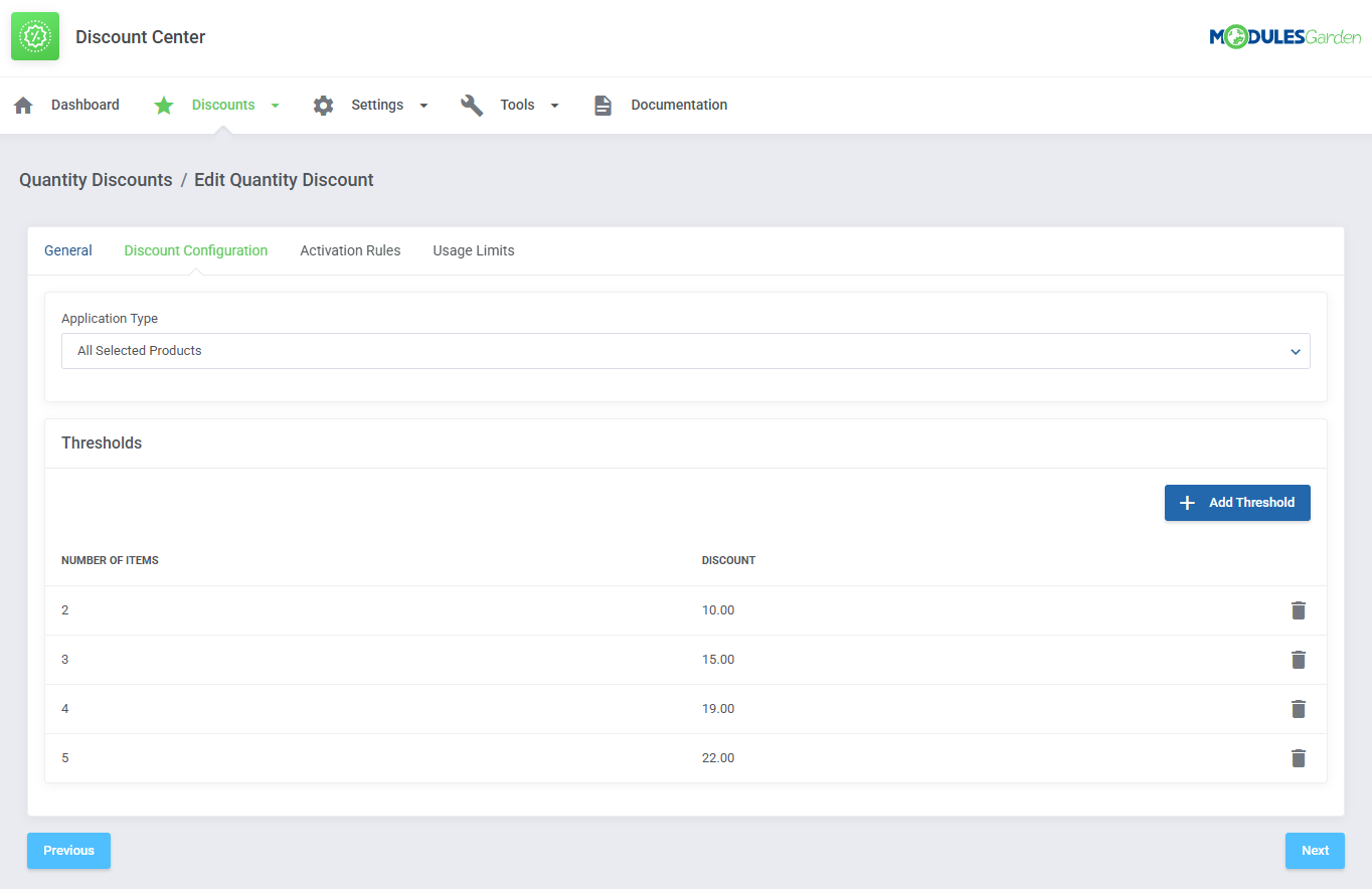 - Create Multiple Quantity Discounts With Thresholds For Products, Product Groups, Domains And Product Addons