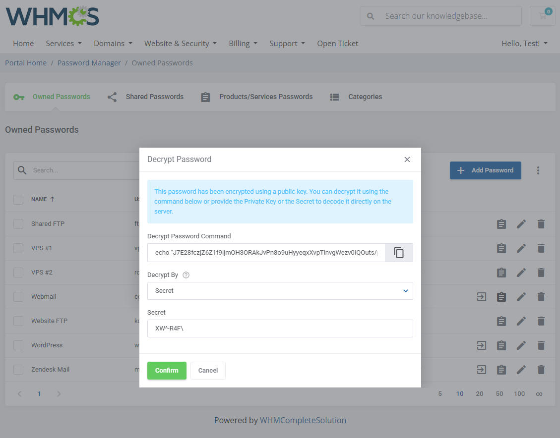 Password Manager For WHMCSRuchir Shastri (Softsys Hosting) 6 years agoThis is excellent addon by ModulesGarden and something we and our customer love and use it every day. Our customers have started using this for their every day use (storing their entire password repo) and they simply LOVE this. It is very well encrypted & we use it extensively to share login details with customers through Password Manager rather than over email or tickets. Highly recommend this addon for anyone using WHMCS!