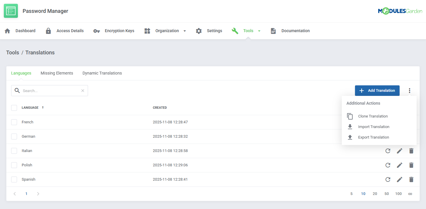 - Added "Missing Elements" and "Dynamic Translations" support to the "Translations" tool for easier localization of newly added entries and values returned dynamically by connected environments or APIs